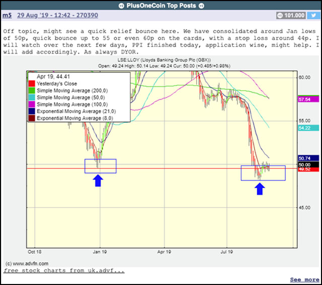 (Example of a post on the Lloyds (LSE:LLOY) thread that has received 101 PlusOneCoin).