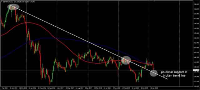 On the other hand, it is worth pointing out that the weekly time frame suggests a more bullish bias for GBPJPY. By connecting the highs of August 2015 and March 2019, we can see that the currency pair is trading above the falling trend line. This suggests that there may be enough buyers in the market to push price higher. The broken trend line may even provide the bulls with much needed support at 136.20 where GBPJPY also bottomed on April 2, 2017.
