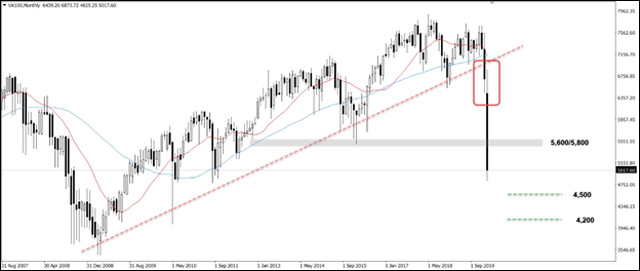 On the stock markets, the FTSE100 has plunged to its lowest level since 2013. We could see a rebound to resistance levels at 5,600 and 5,800.