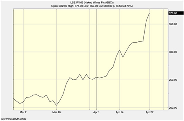 Anecdotal evidence certainly points to an increase of alcohol consumption amongst Brits in lockdown (Majestic even had to temporarily suspend new customers while it processed existing orders) and figures from the Office for National Statistics (ONS) have confirmed. Alcohol sales volume jumped by 31.4% – 32.6% in value terms – in March. A separate survey by Nielsen found that spirit sales were up 75 per cent in the week ending March 21st compared with the same period last year with beer up 66% and wine up 42%. Diageo (LSE:DGE) and Naked Wines (LSE:WINE) stock charts tell the same story with the latter hitting an upwards yearly price breakout today.