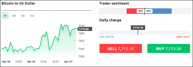 Thursday 16th April: After having dipped in Asia, bitcoin moved sharply higher to a peak above $7,100.