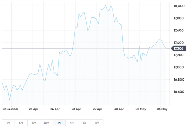 It hit bottom on 16 March at 15,731.85, and has since made a tentative start at recovery.