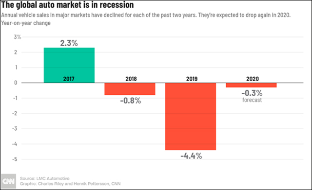 Despite the fact that the International Monetary Fund decreased its growth forecasts for the global economy, to the lowest level since the 2008 financial crisis, it has also softened previous risk warnings and registered some improvement in the auto sector as disruptions from new emission standards start to fade. Even though, as has been observed by CNN, “Automakers are facing challenges that mean they will have to make changes to business models above and beyond those required by technological reconfiguration”.