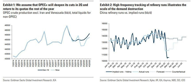 Finally yet importantly, Goldman has cut its oil price target by $10 to $53 in Q1 through the end of the year, due to a loss of as much as 4 million barrels per day out of China.