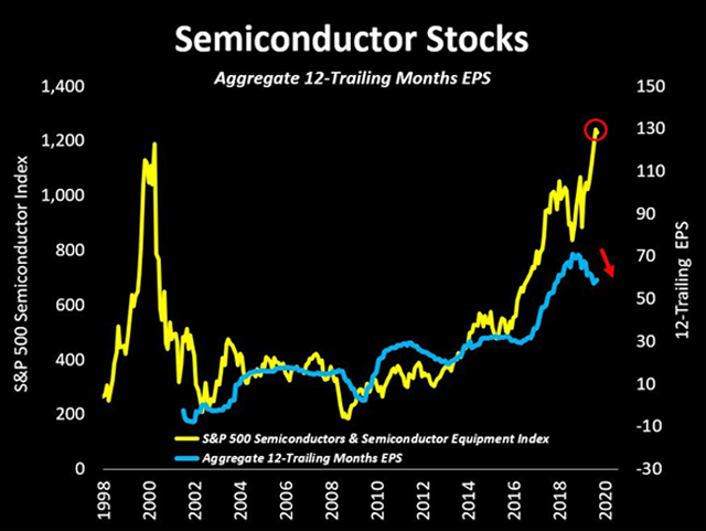 Even semiconductor companies stocks continue to reach new highs, despite a certain decrease in their earnings per share.