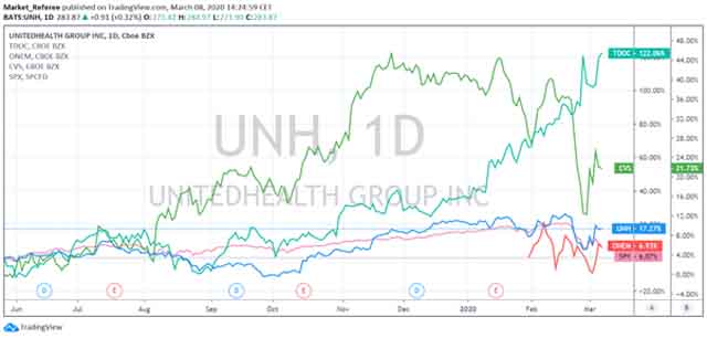 For now, some of the insurance companies are performing better than SPX. In addition, last week health insurers added about $48 billion in market value after Joe Biden’s once-faltering Democratic presidential campaign was reanimated on Super Tuesday. We find it important to mention that Sanders has campaigned on the promise of Medicare-for-all, which poses a threat to private insurers.
