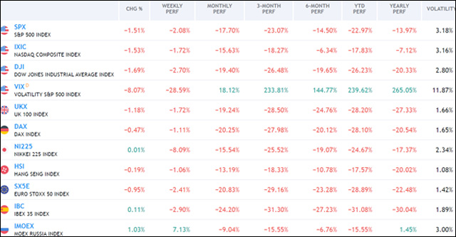 Last week, S&P 500 fell 2,08%, Nasdaq Composite lost 1,72%, Industrial Dow Jones decreased 2,70%, UX 100 Index went down by 1,72%, DAX registered a 1,11% downgraded, whereas Euro Stoxx 50 Index fell -2,41%. Nikkei 225 rested 8,09%, while the Hang Seng Index decreased by 1,06%. Finally, the Russian Moex Index grew 7,13%, whilst Spanish Ibex 35 lowered 2,90%.