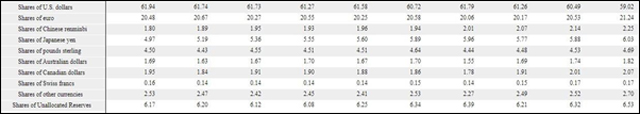 The second topic that needs to be discussed is The U.S. dollar’s share of currency reserves.