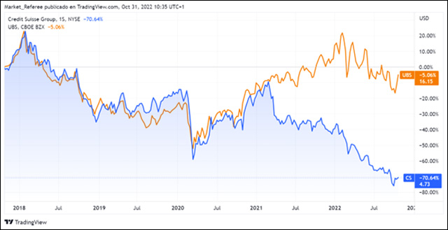 Sinking slowly but steadily. Once the first largest bank in Switzerland in terms of total assets sees the ground slipping from underneath it. On a year-to-date basis, the company’s stock has depreciated by over 60%, whereas its closest competitor UBS has lost around 10% of its share value. Such discrepancy is due to some fundamental factors rather than cyclical developments.